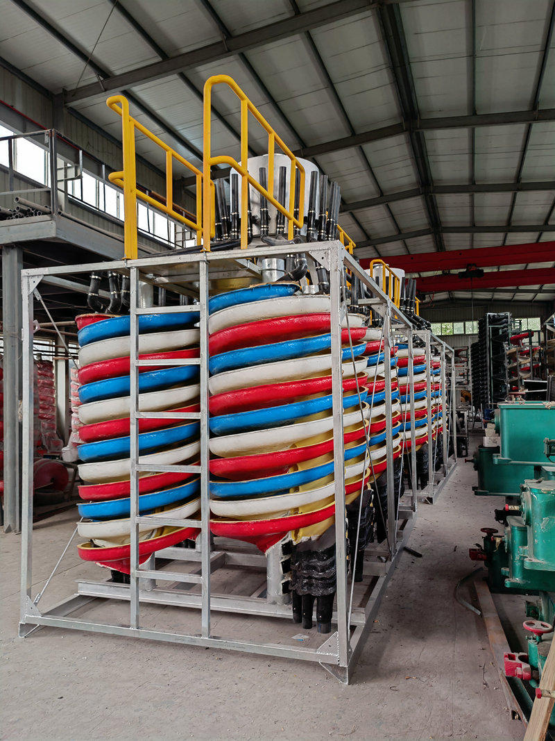 公司有玻璃鋼化工技術(shù)及制造工藝的優(yōu)勢,早在1988年就研制開發(fā)了國內(nèi)大直徑及新斷面特性的DL—2000型兩米直徑玻璃鋼螺旋溜槽。該設(shè)備一臺處理能力相當(dāng)于40臺搖床,選別指標(biāo)優(yōu)良。1989年通過部級技術(shù)鑒定并獲獎,填補(bǔ)國內(nèi)選礦設(shè)備一項(xiàng)空白。20多年來,公司先后開發(fā)了一系列玻璃鋼選礦新設(shè)備,使設(shè)備性能、結(jié)構(gòu)參數(shù)更臻完善。就玻璃鋼螺旋溜槽φ400—φ2000各類系列產(chǎn)品和各種床條結(jié)構(gòu)的玻璃鋼搖床而言,公司擁有國內(nèi)完備的直徑與型號系列;完善的結(jié)構(gòu)參數(shù);過硬的制作質(zhì)量;新穎的改進(jìn)型式;可靠的設(shè)備選型方法。